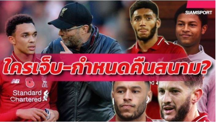 ในเวลานี้ “หงส์แดง” มีผู้เล่นเจ็บอยู่ 8 คน โดยเป็นใคร และมีกำหนดคืนสนามเมื่อไหร่บ้างไปดูกันได้เลย
