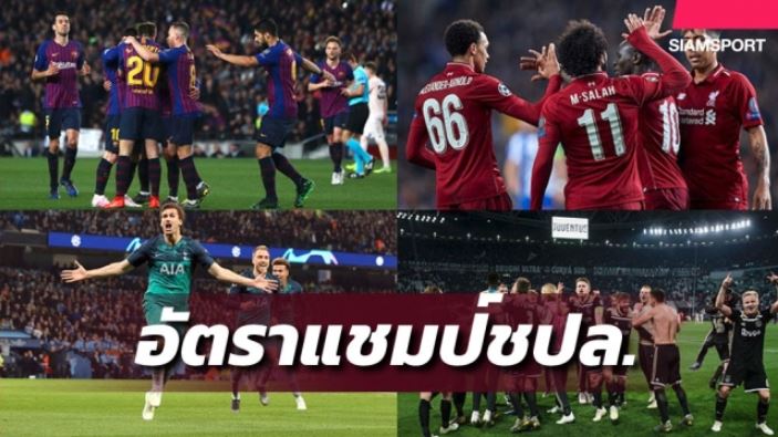 บาร์เซโลน่า จะเจอกับ ลิเวอร์พูล ส่วน สเปอร์ส ดวล อาแจ็กซ์ ในรอบรองชนะเลิศ โดยบ่อนดังเมืองผู้ดีให้ “เจ้าบุญทุ่ม” เป็นเต็ง 1 ที่ราคา 11/8 (แทง 8 จ่าย 11 ไม่รวมทุน) ตามมาด้วย หงส์แดง” ที่ราคา 5/2 (แทง 2 จ่าย 5 ไม่รวมทุน) ขณะที่ “ไก่เดือยทอง” กับ อาแจ็กซ์ รั้งเต็ง 3 ร่วมกัน