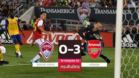 “ปืนใหญ่” อาร์เซน่อล จัดเด็กลงโชว์ของส่งดาวรุ่งลงสนามยกชุดไล่อัดเอาชนะ โคโลราโด ราปิดส์ ทีมดังแห่งศึกเมเจอร์ลีก ซอคเก้อร์ 3-0 ในเกมอุ่นเครื่องปรีซีซั่นที่อเมริกา “ปืนใหญ่” อาร์เซน่อล ทีมดังแห่งศึกพรีเมียร์ลีก ลงเล่นเกมอุ่นเครื่องปรีซีซั่นที่สหรัฐฯพบกับ โคโลราโด ราปิดส์ ทีมดังแห่งศึกเมเจอร์ลีก ซอคเก้อร์ สหรัฐ โดยที่ อูไน เอเมรี่ จัดดาวรุ่งลงสนามแบบยกทีมมีแข้งซีเนียร์แต่ไม่ใช่แกนหลักจากทีมชุดใหญ่ซีซั่นที่แล้วอย่าง คาลั่ม แชมเบอร์ส และ คาร์ล เจนกินสัน ลงเล่นเกมรับ ฝั่งเจ้าถิ่น คอเนอร์ เคซี่ย์ รักษาการเทรนเนอร์โคโลราโด ราปิดส์ จัดทีมชุดผสมเน้นที่สำรองและดาวรุ่งลงเล่นโดยที่ไม่มีชื่อแกนหลักอย่างทิม ฮาวเวิร์ด ประตูตัวเก๋า, ดีเอโก้ รูบิโอ ตัวรุกชิลี และ ไค กามาร่า หัวหอกเซียร์ราลีโอน มี เคลลิน อกอสต้า ที่โดนแบนในเกมลีกนัดล่าสุดลงเป็นจอมทัพแดนกลาง ผลการแข่งขันปรากฎว่าแม้อาร์เซน่อลจะใช้เด็กแบกอายุลงเล่นแต่กลับทำผลงานได้ดีกว่าชัดเจนมาได้ประตูนำเร็วตั้งแต่นาที 13 จาก บูกาโย่ ซาก้า กองหน้าวัย 17 ปี จากนั้น เจมส์ โอลายินก้า กองกลางดาวโรจน์วัย 18 ปีโชว์ทีเด็ดซัดให้ปืนใหญ่นำ 2-0 ในนาที 29 ขณะที่ครึ่งหลังอาร์เซน่อลมาได้ประตูที่ 3 ในนาที 61 จาก กาเบรียล มาร์ติเนลลี่ กองหน้าวัย 18 ปีที่เพิ่งย้ายมาร่วมทีมในซัมเมอร์นี้ จากนั้นเอเมรี่ ทยอยเปลี่ยนตัวหลักลงเล่นส่งทั้ง โจ วิลล็อค, ชโคดราน มุสตาฟี่, เซอัด โคลาซินัช ,เมซุต โอซิล, อเล็กซองด์ ลากาแซตต์ และ ปิแอร์-เอเมอริค โอบาเมยอง ลงสนามแต่ไม่มีประตูเพิ่มทำให้จบเกมอาร์เซน่อลเอาชนะ โคโลราโด ราปิดส์ 3-0อาร์เซน่อลมีโปรแกรมลงเล่นฟุตบอลรายการพิเศษ อินเตอร์เนชันแนล แชมเปี้ยนส์ คัพ 2019 (ICC) พบ บาเยิร์น มิวนิค สโมสรยักษ์ใหญ่แห่งบุนเดสลีกา เยอรมัน เช้าวันพฤหัสบดีที่ 18 ก.ค. เวลา 10.00 น. (เวลาไทย) ช่อง PPTV HD ถ่ายทอดสด