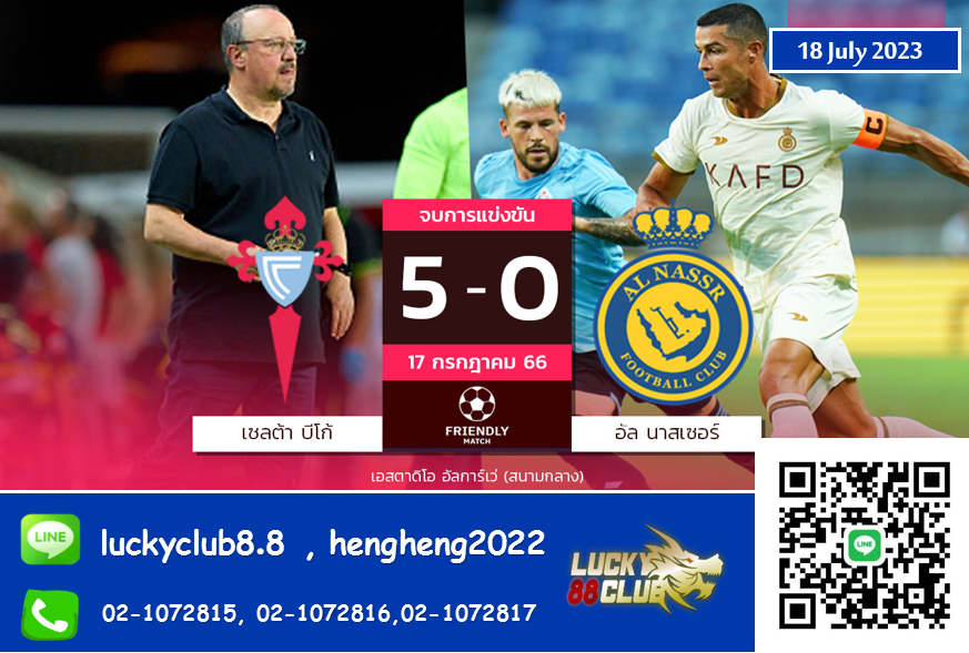 ศึกฟุตบอลกระชับมิตรสโมสร คืนวันจันทร์ที่ 17 กรกฎาคมที่ผ่านมา อัล นาสเซอร์ ทีมดังแดนซาอุดิฯ ของนายใหม่ชาวโครแอต ดินโก้ เยลิซิช นำทัพโดย “คริสเตียโน่ โรนัลโด้” พร้อมสตาร์ป้ายแดง “มาร์เซโล่ โบรโซวิช” ลงเปิดตัวลุย เซลต้า บีโก้ ที่มีกุนซือใหม่ถอดด้าม ราฟา เบนิเตซ ประเดิมคุมแมตช์แรก โดยนัดนี้ทำการแข่งขันกันที่ประเทศโปรตุเกส