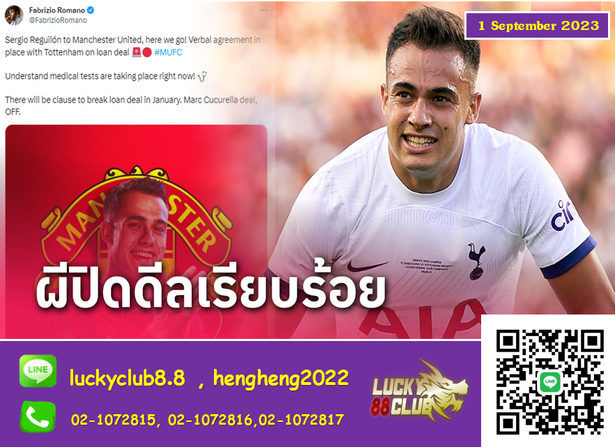 โรมาโน่ ยืนยันผ่าน ทวิตเตอร์ (X) ส่วนตัว พร้อมวลีเด็ด “เฮียร์ วี โก” ว่า เรกีลอน กำลังจะย้ายไป แมนฯ ยูไนเต็ด แบบสัญญายืมตัว โดยที่ “ปีศาจแดง” มีเงื่อนไขสามารถยกเลิกสัญญา และส่งนักเตะกลับ สเปอร์ส ได้ในช่วงเดือนมกราคม