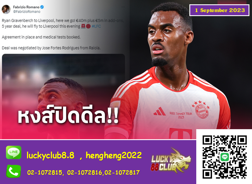 ฟาบริซิโอ โรมาโน่ เหยี่ยวข่าวลูกหนังคนดัง ประกาศ “เฮียร์ วี โก” เรียบร้อย ลิเวอร์พูล ตกลงคว้า ไรอัน กราเฟนแบร์ค จาก บาเยิร์น มิวนิค ได้สำเร็จ ที่ราคารวมโบนัสกว่า 1,700 ล้านบาท
