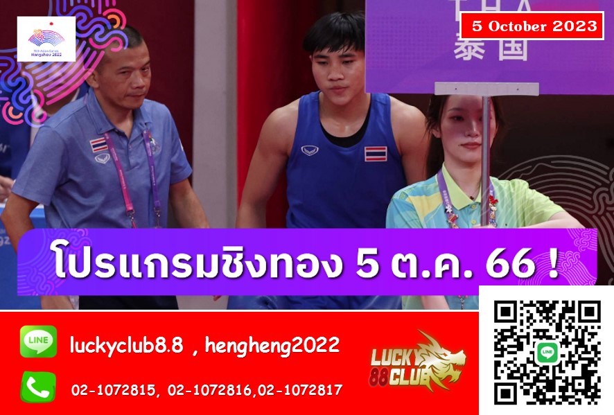 โปรแกรมเอเชียนเกมส์วันนี้ 5 ตุลาคม ชิง 36 ทอง ส่งเสียงเชียร์ดังๆลุ้น จันทร์แจ่ม สุวรรณเพ็ง เข้าไปชิงกับ หยาง หลิว แชมป์โลกคู่ปรับเก่าชาวจีน เวลา 18.15 น. ส่วน ยกน้ำหนัก ศรัท สุ่มประดิษฐ์ จะขึ้นเวทีล่าเหรียญ รุ่น 96 กิโลกรัมชาย ขณะที่ วอลเลย์บอลหญิงไทย พบ ญี่ปุ่น ในเวลา 18.00 น. ช่อง T SPORTS 7 และ AIS PLAY ถ่ายทอดสด เริ่มเวลา 08.00 น.