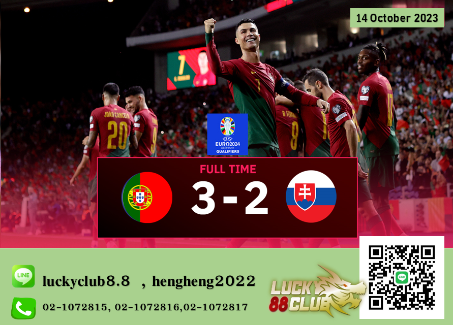 เกมเปิดแลกหมัดกันสนุก นาที 80 ทัพสโลวักไม่ยอมง่ายๆ มาทวงประตูไล่มาเป็น 2-3 จากการยิงของ สตานิสลาฟ โลบ็อตก้า ดาวเตะจากนาโปลี แต่ก็ไล่ไม่ทันหลังจบเกมเป็นอันว่า โปรตุเกส เปิดบ้านไล่บดเอาชนะ สโลวาเกีย 3-2 ชนะ 7 นัดรวด มี 21 คะแนน การันตีผ่านไปเล่นรอบสุดท้ายศึก ยูโร 2024 ที่ประเทศเยอรมนีแน่นอนแล้ว