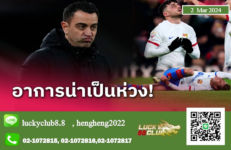 ชาบี เอร์นานเดซ เทรนเนอร์ บาร์เซโลน่า เปิดเผยว่าอาการบาดเจ็บของทั้ง เฟรงกี้ เดอ ยอง และ เปดรี้ ถือว่าน่าเป็นห่วงพอตัว หลังทั้งคู่ได้รับบาดเจ็บระหว่างเกม ลา ลีกา สเปน นัดที่ “อาซูลกราน่า” ออกไปเสมอกับ แอธเลติก บิลเบา 0-0 เมื่อวันอาทิตย์ที่ 3 มีนาคม ที่ผ่านมา