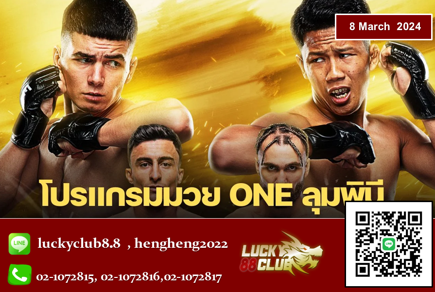 โปรแกรมมวย ONE ลุมพินี 54 ระเบิดความมันส์มวยวันศุกร์ ศึกมวย ONE ลุมพินี วันศุกร์ที่ 8 มีนาคม 2567 นี้ ถ่ายทอดสดทางช่อง 7HD กดเลข 35 (ภาษาไทย) เริ่ม 20.30 น. โปรแกรมมวย วันนี้ ศึก ONE Lumpinee 54 เช็คคู่แข่งขัน คู่เอก พร้อมช่องทางชมสดที่นี่ ตั้งแต่เวลา 2 ทุ่ม 30 นาทีเป็นต้นไป