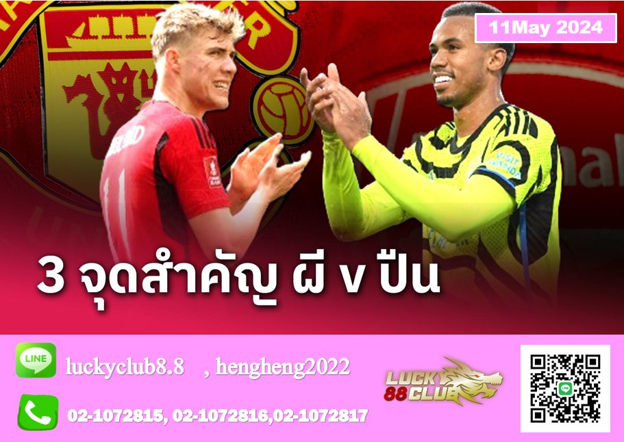 คืนวันอาทิตย์ที่ 12 พฤษภาคมนี้ “ไอ้ปืนใหญ่” อาร์เซน่อล จ่าฝูง พรีเมียร์ลีก มีคิวทำศึกบิ๊กแมตช์ โดยจะออกไปเยือน แมนเชสเตอร์ ยูไนเต็ด ทีมอันดับแปด ซึ่งแน่นอนว่า อาร์เซน่อล ต้องการสามแต้มอย่างมาก เพื่อโอกาสคว้าแชมป์ลีก ที่พวกเขารอคอยมานานร่วม 20 ปี ขณะที่ “ปีศาจแดง” แม้ชั่วโมงนี้ดูห่างชั้นจากคู่แข่ง ทั้งในเรี่องของคุณภาพและสภาพทีม แต่ด้วยเรื่องของศักดิ์ศรี ลูกทีมของกุนซือ เอริค เทน ฮาก คงสู้สุดใจอย่างไม่ต้องสงสัย และนี่คือ 3 จุดปะทะสำคัญในเกมสุดมันส์ ที่กำลังจะเกิดขึ้น ณ สังเวียนแข้ง โอลด์ แทร็ฟฟอร์