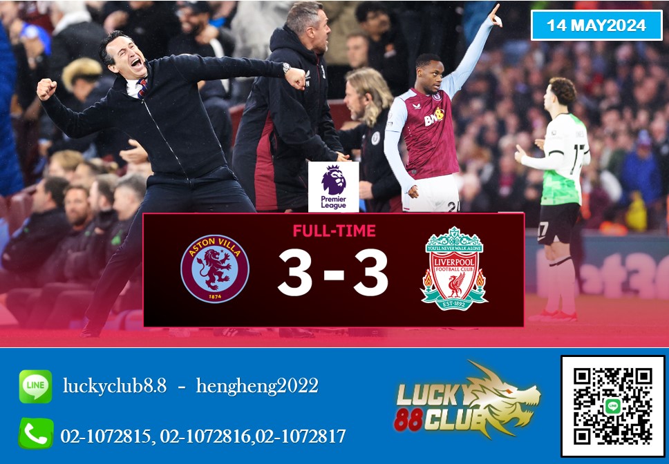 “แอสตัน วิลล่า” โชว์ฮึดในบ้าน ครึ่งหลัง โดนทิ้งห่างไปถึงสองสกอร์แต่มาได้ จอน ดูราน ตัวสำรองทีเด็ดรัว 2 เม็ดใน 4 นาทีพาทีมไล่ตีเสมอ “ลิเวอร์พูล” 3-3 ยึดอันดับ 4 เพิ่มโอกาสซิวตั๋วลุย ชปล. ใบสุดท้ายโยนความกดดันให้ “ไก่เดือยทอง” อันดับ 5 ที่ต้องเฮเท่านั้นในเกมฟัด “แมนซิตี้” วันพรุ่งนี้