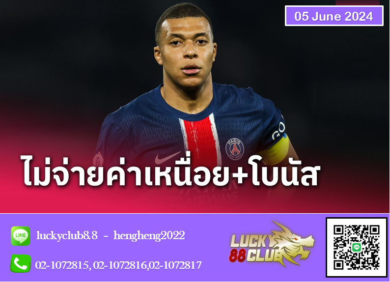 ปารีส แซงต์-แชร์กแมง ยอดทีมแห่งศึกลีก เอิง ฝรั่งเศส ปฏิเสธที่จะจ่ายค่าเหนื่อยและโบนัสรวม 80 ล้านยูโร (ราว 3,200 ล้านบาท) ให้กับ คีลิยัน เอ็มบัปเป้ กองหน้าสตาร์ดัง หลังย้ายไปอยู่กับ เรอัล มาดริด แบบฟรีไม่มีค่าตัว
