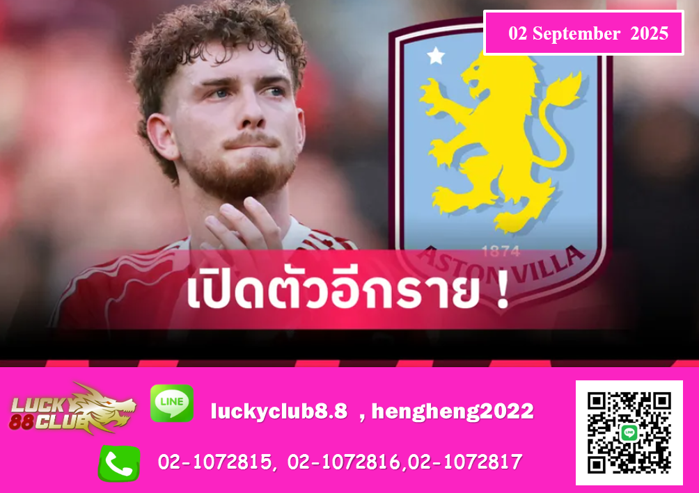 แอสตัน วิลล่า ประกาศเซ็นสัญญา พร้อมเปิดตัว ฮาร์วีย์ เอลเลียตต์ กองกลางตัวรุกชาวอังกฤษ ที่ย้ายมาจาก ลิเวอร์พูล แบบสัญญายืมตัว 1 ฤดูกาล เมื่อวันจันทร์ที่ 1 กันยายน ที่ผ่านมา