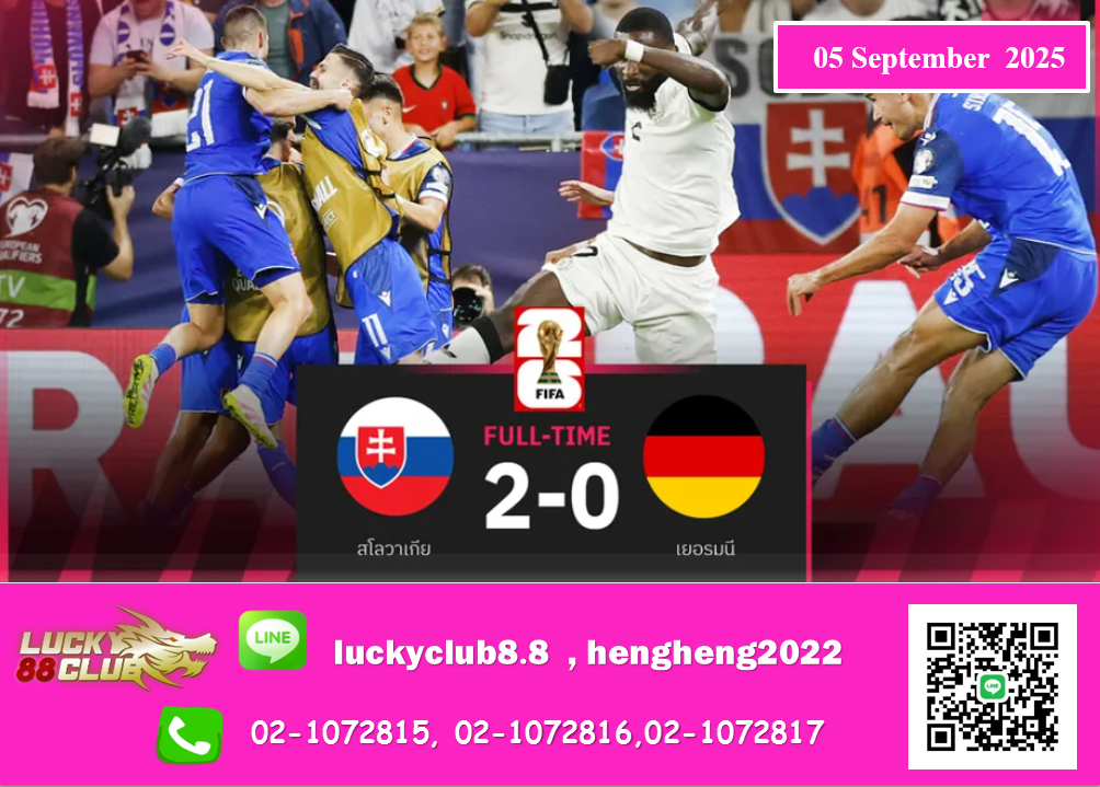 ศึกฟุตบอลโลก 2026 รอบคัดเลือก โซนยุโรป กลุ่ม เอ นัดแรก ระหว่าง สโลวาเกีย พบ เยอรมนี ที่สนาม เตเฮลเน โปเล กรุงบราติสลาวา ประเทศสโลวาเกีย วันพฤหัสบดีที่ 4 กันยายน 2568