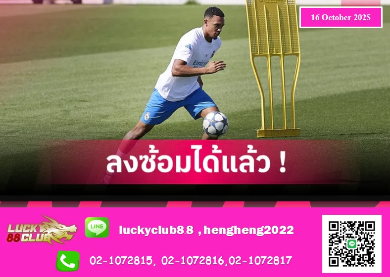 เทรนต์ อเล็กซานเดอร์ อาร์โนลด์ แบ็คขวาทีม เรอัล มาดริด กลับมาลงซ้อมได้แล้วหลังเจ็บกล้ามเนื้อต้นขาด้านหลังเมื่อเดือนก่อนซึ่งเป็นการส่งสัญญาณให้รู้ว่าเจ้าตัวมีโอกาสฟิตทันลงเล่นเกม เอล กลาซิโก้ ก่อนบุกไปเยือน ลิเวอร์พูล ในถ้วย แชมเปี้ยนส์ ลีก เดือนหน้า