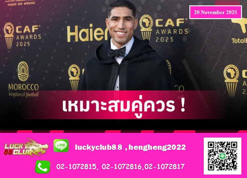 อาชราฟ ฮาคิมี่ แบ็คขวาทีม ปารีส แซงต์ แชร์กแมง ได้รับเลือกให้ครองตำแหน่งนักเตะยอดเยี่ยมแห่งทวีปแอฟริกาปี 2025 ขณะที่ โม ซาลาห์ ดาวยิงทีม ลิเวอร์พูล รั้งอันดับสองตามด้วย วิคเตอร์ โอซีเมน ศูนย์หน้าทีม กาลาตาซาราย