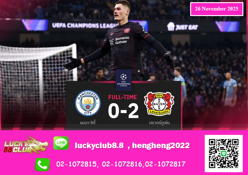 ศึกยูฟ่า แชมเปี้ยนส์ ลีก รอบ ลีก เฟส ประจำวันอังคารที่ 25 พฤศจิกายน ระหว่าง แมนเชสเตอร์ ซิตี้ เปิดรังเอติฮัด สเตเดี้ยม ต้อนรับการมาเยือนของ ไบเออร์ เลเวอร์คูเซ่น โดยทัพ “เรือใบสีฟ้า” มีการโรเตชั่นเกือบยกทีมจากแมตช์แพ้ที่ นิวคาสเซิ่ล ยูไนเต็ด เมื่อวันเสาร์ที่ผ่านมา