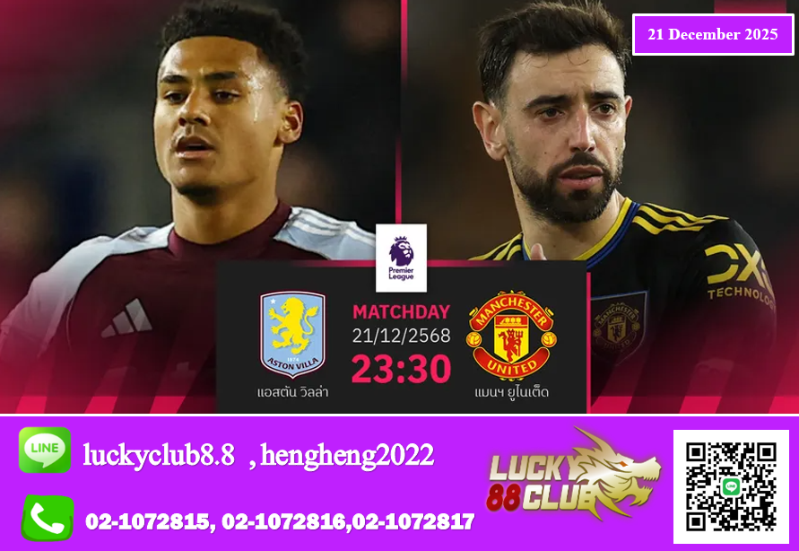 ศึกพรีเมียร์ลีกคู่เอกวันอาทิตย์ แอสตัน วิลล่า ฟอร์มแรงลุ้นชัย 10 นัดติด เปิดบ้านรับ แมนฯ ยูไนเต็ด ที่หวังยืดสถิติไร้พ่ายเป็น 5 เกม เกมนี้ชี้วัดโมเมนตัมลุ้นแชมป์และท็อปโฟร์