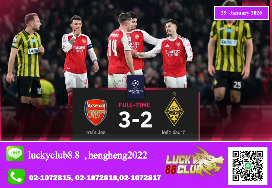 จบเกม อาร์เซน่อล เปิดบ้านเชือด ไครัต อัลมาตี 3-2 ทำสถิติชนะรวดทั้ง 8 นัด โกยเน้นๆ 24 แต้ม คว้าแชมป์รอบ ลีก เฟส ผ่านเข้าสู่รอบ 16 ทีมสุดท้าย แชมเปี้ยนส์ ลีก อย่างสง่างาม ซึ่งการจับสลากประกบคู่จะมีขึ้นในวันที่ 27 กุมภาพันธ์