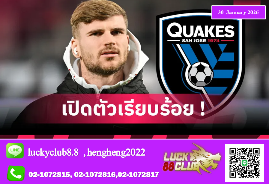ซาน โฮเซ เอิร์ธเควกส์ สโมสรชั้นนำในศึก เมเจอร์ลีก ซอคเกอร์ (เอ็มแอลเอส) สหรัฐอเมริกา ประกาศเซ็นสัญญา พร้อมเปิดตัว ติโม แวร์เนอร์ กองหน้าชื่อดังชาวเยอรมัน อย่างเป็นทางการ เมื่อวันพฤหัสบดีที่ 29 มกราคม ที่ผ่านมา