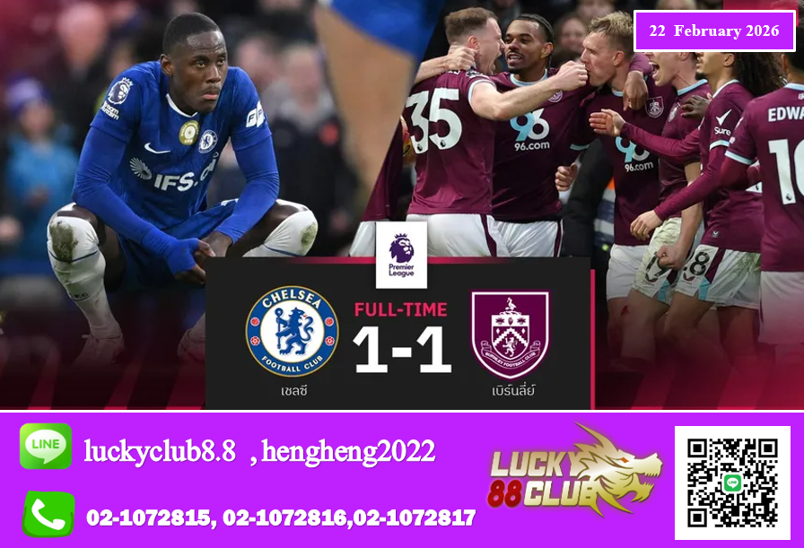 ฟุตบอล พรีเมียร์ลีก อังกฤษ นัดที่ 27 เมื่อวันเสาร์ที่ 21 กุมภาพันธ์ 2569 เจ้าบ้าน เชลซี อันดับ 5 ซึ่งมี 44 คะแนน เปิดสแตมฟอร์ด บริดจ์ รับมือ เบิร์นลี่ย์ ทีมรองบ๊วยอันดับ 19 มีอยู่ 18 คะแนน