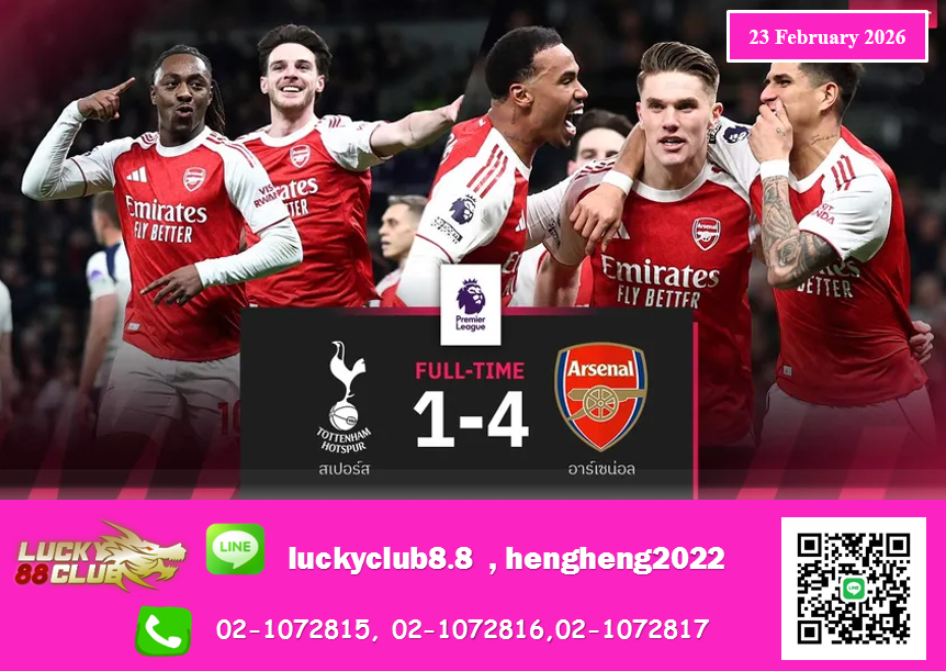 จบเกม อาร์เซน่อล บุกคว้าชัยเหนือสเปอร์ส 4-1 คว้าสามแต้มสำคัญเก็บเพิ่มเป็น 61 คะแนนนำจ่าฝูงต่อไปพร้อมหนี แมนซิตี้ 5 คะแนนแต่แข่งมากกว่าหนึ่งนัด ส่วน “ไก่เดือยทอง” ผลงานย่ำแย่รั้งอันดับ 16 มี 29 คะแนนมากกว่าโซนตกชั้นแค่ 4 แต้ม