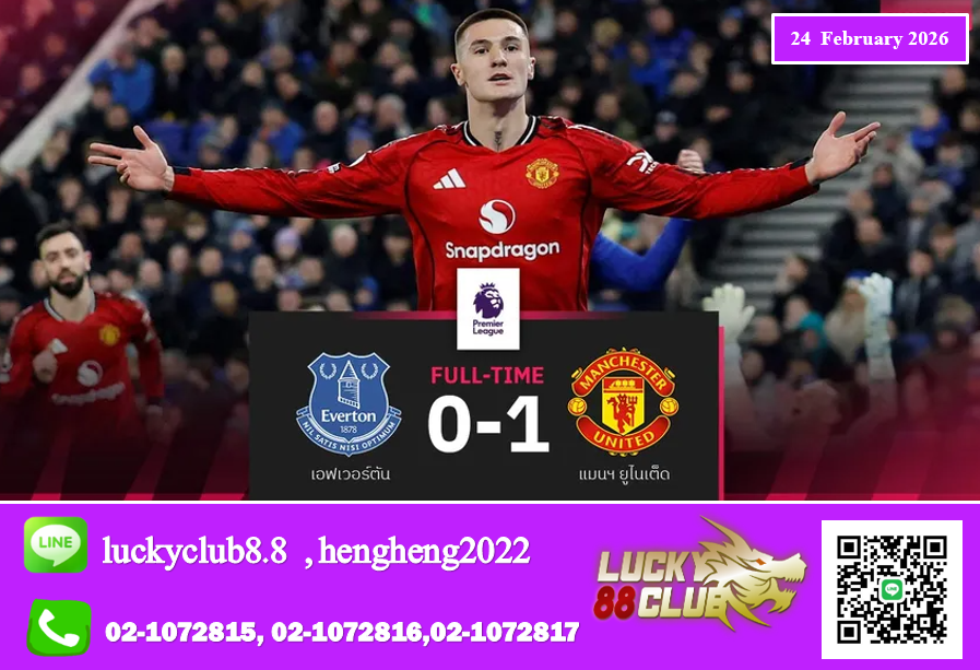 ฟุตบอล พรีเมียร์ลีก อังกฤษ นัดที่ 27 เมื่อวันจันทร์ที่ 23 ก.พ.ที่ผ่านมา เอฟเวอร์ตัน อันดับ 9 เปิดรังฮิลล์ ดิคกินสัน สเตเดี้ยม รับการมาเยือนของ แมนฯ ยูไนเต็ด ที่รั้งอันดับ 5