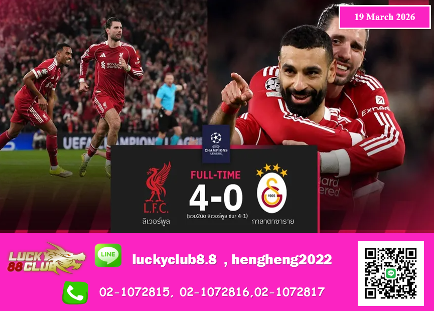 ฟุตบอล ยูฟ่า แชมเปี้ยนส์ ลีก รอบ 16 ทีมสุดท้าย นัดสอง เมื่อวันพุธที่ 18 มีนาคม ที่ผ่นมา เจ้าบ้าน ลิเวอร์พูล อดีตแชมป์รายการนี้ 6 สมัย เปิดแอนฟิลด์รับมือ กาลาตาซาราย ที่นัดแรกทีมดังจากตุรกีชนะมา 1-0 โดย “หงส์แดง” ต้องชนะสถานเดียวเพื่อลุ้นเข้ารอบ